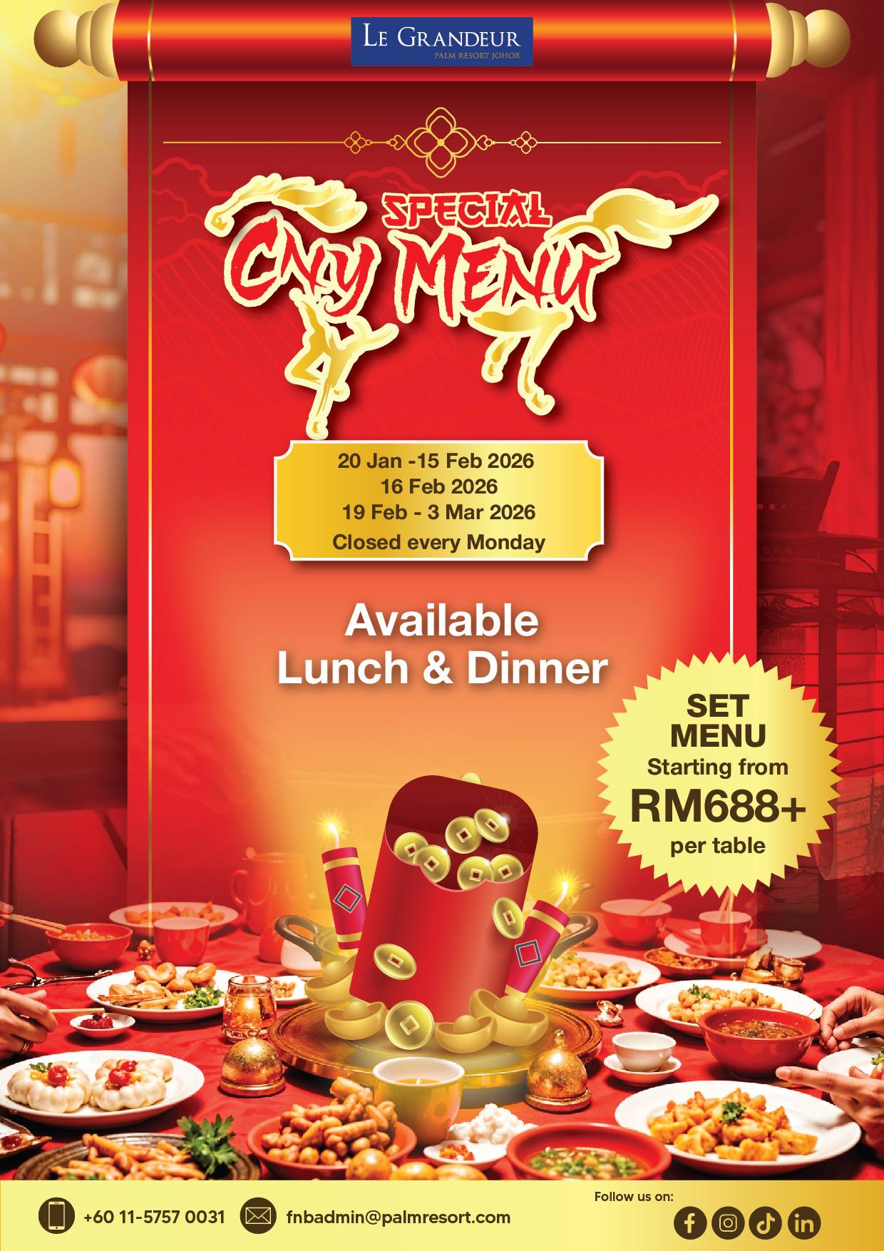 Usher in the Lunar New Year with a delightful festive dining experience at Le Grandeur, Palm Resort Johor 🥢